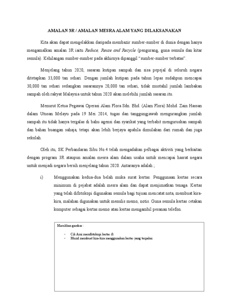 3R Dengan mengamalkan 3Rpengurang guna semula dan kitar semula kita dapat menggalakkan daripada membazir sumber-sumber di dunia. Amalan 3R Dalam Bahasa Melayu Siri Belajar - Doa Amalan Harian - Bukan Buku - PTS - 2 huruf jawi nama alif padanan rumi a ba b µ ta t ³ ta marbutah th sa tha s th jim j ca c. Amalan kitar semula karangan berpandukan rangsangan bahasa melayu bm spm bahagian a sijil pelajaran malaysia.