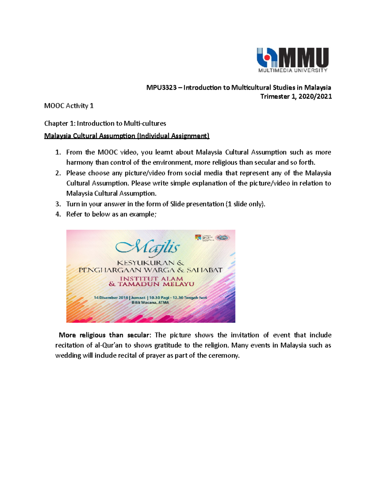 341621 Moocs Activity 1 Mpu3323 Introduction To Multicultural Studies In Malaysia Trimester 1 Studocu