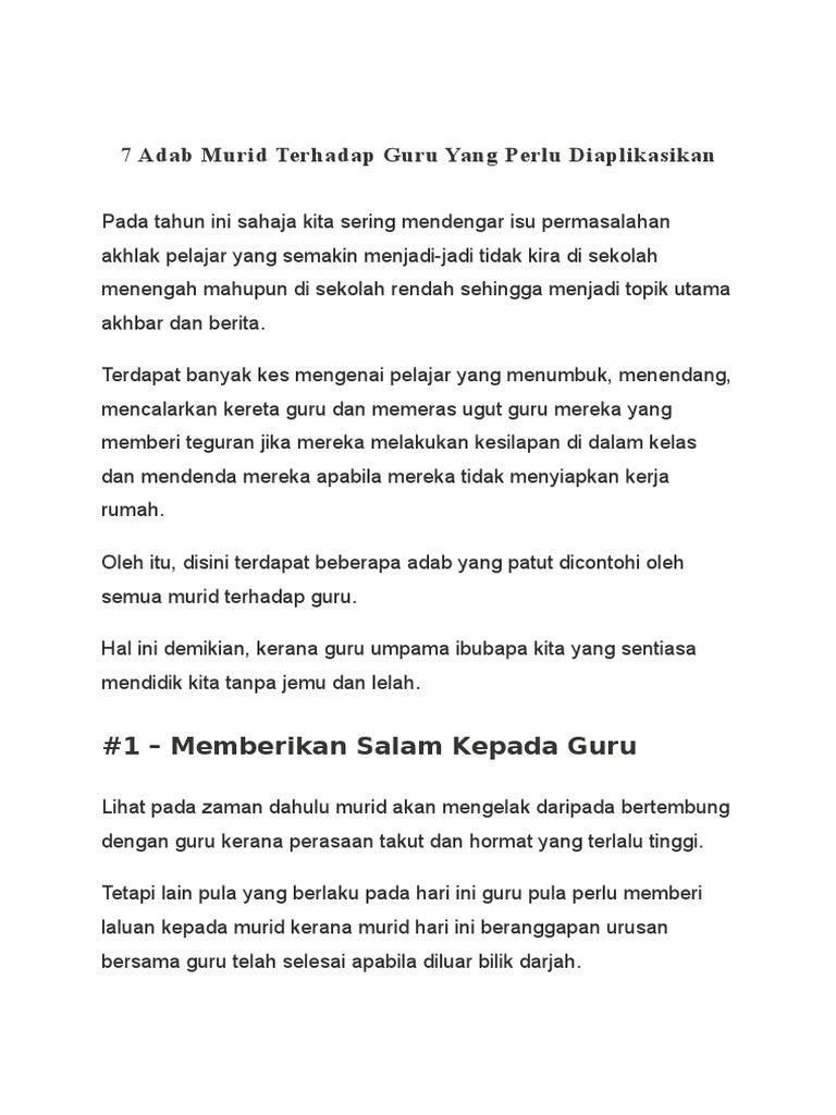 Adab Mendidik Kanak-kanak Pada zaman sekarang ini telah banyak perkara yang jelik berlaku di dalam masyarakat Melayu di Tanah Melayu ini. Ia pun tak ragu memencet bel atau mengetuk pintu. Nilai harga diri orang Melayu adalah Islam Nilai adab dan kelakuan masyarakat Melayu boleh dibahagikan kepada tiga penjuru yang mempunyai pengaruh besar dalam.