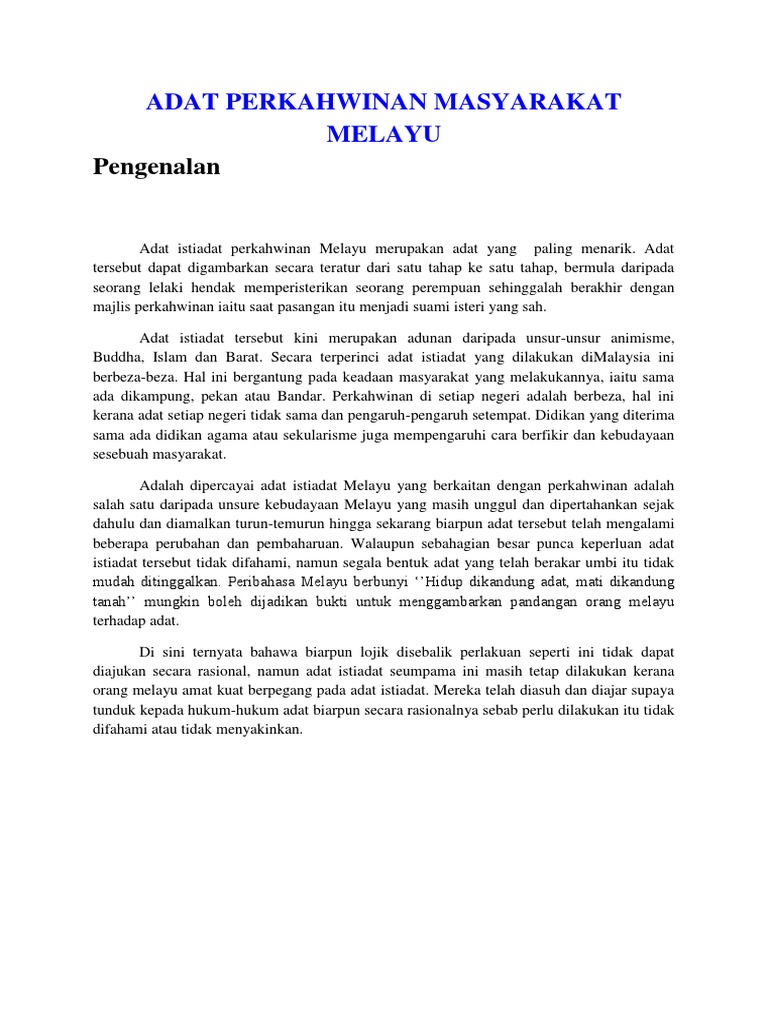 Adat meminang masyarakat melayu. ADAT RESAM MASYARAKAT MELAYU Biar mati anak jangan mati adat merupakan peribahasa Melayu yang menggambarkan kepentingan adat masyarakat Melayu. Upacara ini akan dijalankan oleh seorang bidan untuk membuang kecelakaan yang akan menimpa wanita hamil sebelum bersalin dan. Malam berinai boleh dianggap sebagai versi melayu untuk bachelorette party yang sering diadakan di negara barat.