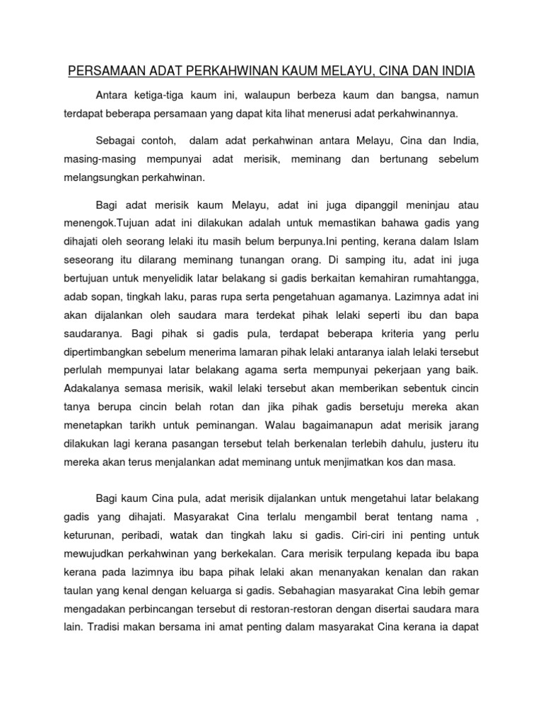 Persamaan Perbezaan Adat Perkahwinan Kaum Melayu Pdf