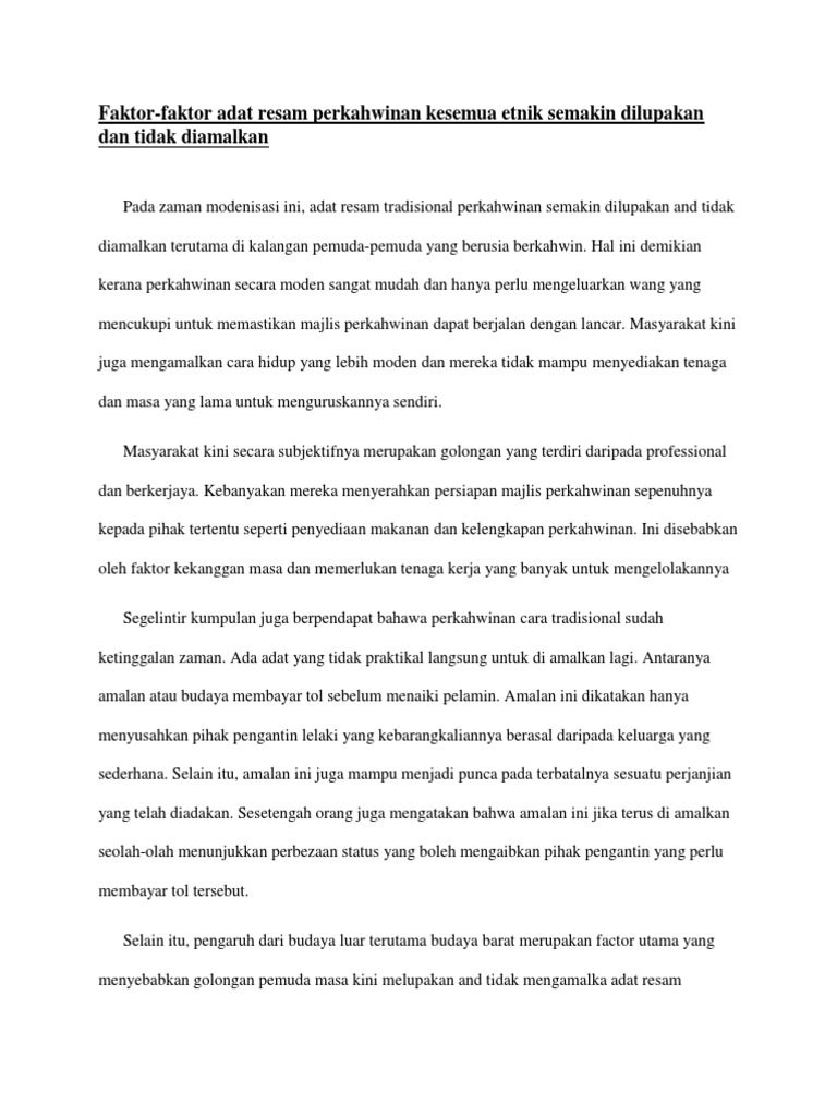 Faktor Faktor Adat Resam Perkahwinan Kesemua Etnik Semakin Dilupakan Dan Tidak Diamalkan Pdf