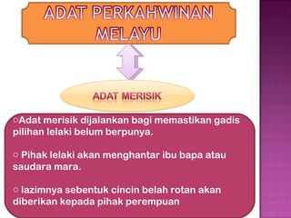 Adat perkahwinan melayu slide. Saifulbhari Bin Dato Paduka Haji Bahar dengan Masdiwati Binti Haji Shahbudin Pada. Video ini merupakan tugasan 1 bagi. O Pihak lelaki akan menghantar ibu bapa atau saudara mara.