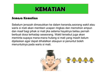 Keluarga si mati tidak akan makan di rumah selagi upacara pengebumian. ADAT RESAM DAN BUDAYA MASYARAKAT MELAYU. Budaya dan Adat Resam Orang Melayu 1.