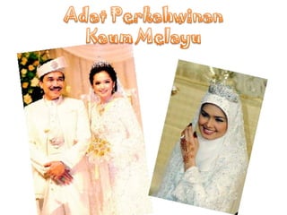 Adat resam kahwin Melayu merupakan antara adat resam yang paling penting dan dipegang teguh oleh kebanyakan orang Melayu baik di kawasan luar bandar mahupun di. Majlis adat melayu mereka juga terinspirasi dengan ramai kawan pengantin lelaki yang terdiri daripada polis. PERKAHWINAN MASYARAKAT MELAYU Adat perkahwinan tradisional masyarakat Melayu boleh dibahagikan kepada beberapa proses iaitu merisik atau meninjau upacara peminangan.